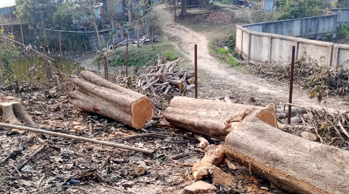 জানা যায়, গাছের পরিমাণ-পরিমাপ, মূল্য নির্ধারণ এবং নিয়ম অনুযায়ী ওপেন টেন্ডার বা নিলাম ঘোষণা না করেই বহু বছরের পুরোনো এসব সেগুন গাছ কাটা হয়েছে। নাম প্রকাশে অনিচ্ছুক একজন জনপ্রতিনিধি জানান, উপজেলা প্রশাসনের নাকের ডগায় এসব মূল্যবান সেগুন গাছ ওপেন টেন্ডার ব্যতিত নির্বিচারে কেটে ফেলা হচ্ছে কিন্তু অদৃশ্য শক্তির ক্ষমতা বলে সবাই নীরব, কেউ বিষয়টি নিয়ে প্রতিবাদ করছেন না।