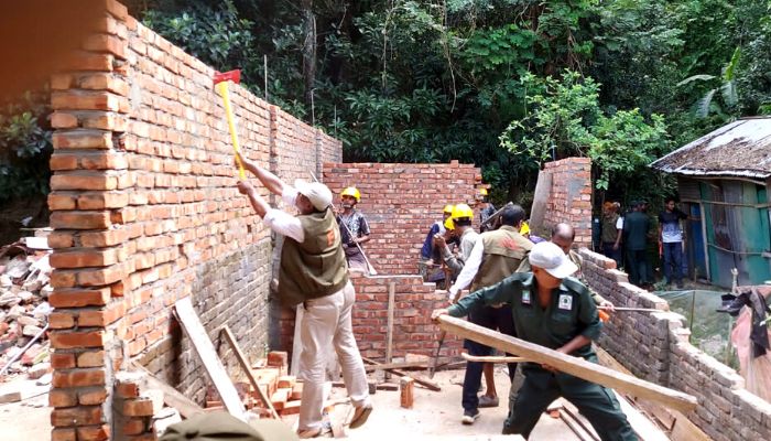 ‌‘কিন্তু এবারের কোরবানির ঈদে বনকর্মীদের ছুটির সুযোগকে কাজে লাগিয়ে সরকারি জায়গাটি জবরদখল নিতে অপচেষ্টা চালায়। রবিবার (১৭ জুলাই) রাতের আঁধারে বেশি সংখ্যক শ্রমিক লাগিয়ে ইটের দেয়াল তুলে কক্ষ তৈরি করছিলেন। এ খবর পেয়ে সোমবার (১৮ জুলাই) সকাল সাড়ে ৯টার দিকে অভিযানের উদ্যোগ নেয়া হয়। ১০টায় ঘটনাস্থলে গিয়ে বনকর্মীরা নির্মাণাধীন সেমিপাকা দেয়ালগুলো ভাঙা শুরু করে। এসময় জবরদখলকারি হাফেজ ও জোবেদার পরিবার ভাড়াটিয়া লোকজন নিয়ে উচ্ছেদকারি বনকর্মীদের উপর হামলার চেষ্টা চালায়। জোবেদা ইয়াসমিন নিজেই তার বহুতল ভবনের ছাদ হতে ইট নিক্ষেপ করছিলেন। বনকর্মীরা আত্মরক্ষা করে জবরদখলে অংশ নেয়া জোবেদা ও হাফেজের মেয়ে জামাই ফরহাদ হোসেনকে হাতে-নাতে আটক করে। তখন অন্যরা পালিয়ে যায়।’— বলেন সমীর রঞ্জন সাহা।