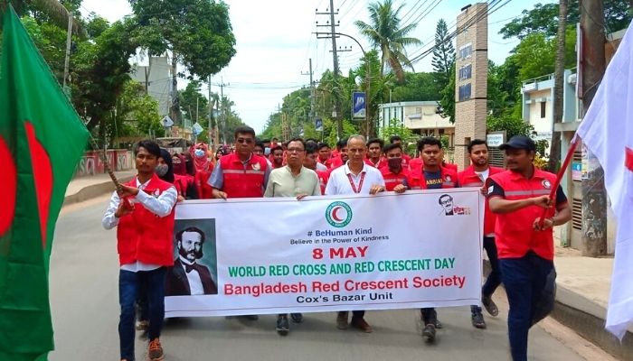 দিবস উপলক্ষে কক্সবাজার রেড ক্রিসেন্ট ইউনিট সেক্রেটারি খোরশেদ আলমের নেতৃত্বে যুব স্বেচ্ছাসেবক, ইউনিট কার্যনির্বাহী সদস্য ও বাংলাদেশ রেড ক্রিসেন্ট সোসাইটির কক্সবাজার জেলায় কর্মরত বিভিন্ন কর্মকর্তা ও কর্মচারীদের উপস্থিতিতে আনুষ্ঠানিকভাবে জাতীয় ও রেড ক্রিসেন্ট পতাকা উত্তোলন করা হয়। তারপর বর্ণাঢ্য শোভাযাত্রা শহরের গুরুত্বপূর্ণ সড়ক প্রদক্ষিণ করে।