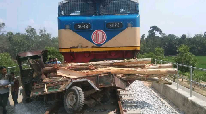 কক্সবাজার এক্সপ্রেসের সঙ্গে গাছবোঝাই নসিমনের ধাক্কা
