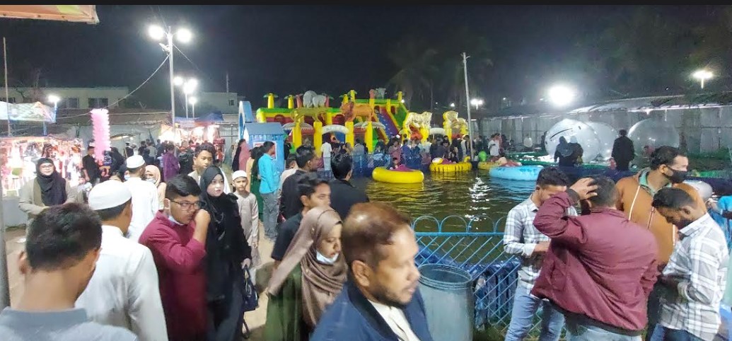 মেলায় আসা শিক্ষার্থী আসমাউল হোসনা ও নিশি মনি জানায়, নৌকা দোলনা, নাগরদোলা, ফাইভার ইলেকট্রিক চর্কি ও মিনি হাতি ঘোড়ায় চড়ে প্রচুর আনন্দ পেয়েছি। দেখেছি যাদু প্রদর্শনীও। শিশুদের বিনোদনের জন্য মেট্রো রেলসহ ওয়াটার স্পীড বোট, জাম্পিং বেলুন, ওয়াটার বলে বাচ্চাদের নিয়ে ভীড় করে আছে মায়েরা। নানা ধরনের মুখরোচক খাবারের স্বাদ নিয়েছি আমরা।