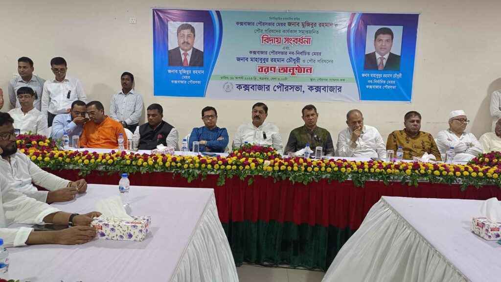 কক্সবাজার পৌরসভার মেয়র মুজিবুর রহমানের পৌর পরিষদের কার্যকাল সমাপ্ত হয়েছে। শুক্রবার (১৮ আগস্ট) মুজিব পরিষদের কার্যকাল সমাপ্তে তাদের বিদায় সংবর্ধনা অনুষ্ঠিত হয়েছে। এসময় বরণ করা হয়েছে নবনির্বাচিত মেয়র মাহবুবুর রহমান চৌধুরীসহ নবাগত পৌর পরিষদকে।