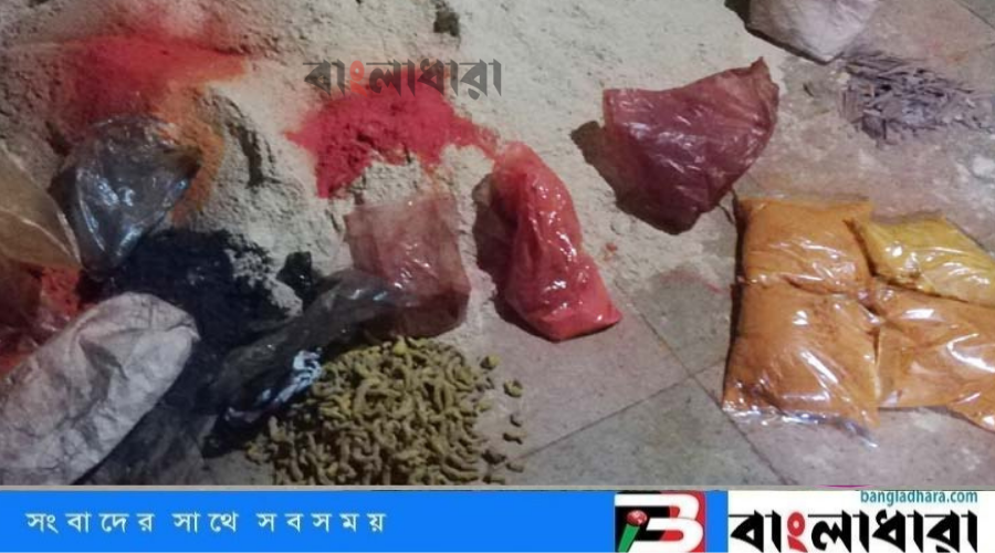 কয়লার গুঁড়ো এবং ধানের কুড়ার সাথে কাপড়ের রং মিশিয়ে তৈরী করা হচ্ছে মরিচ ও হলুদ। ভেজাল মসলা উৎপাদনের অপরাধে খাতুনগঞ্জের এক মিলকে দুই লাখ টাকা জরিমানা করা হয়েছে।