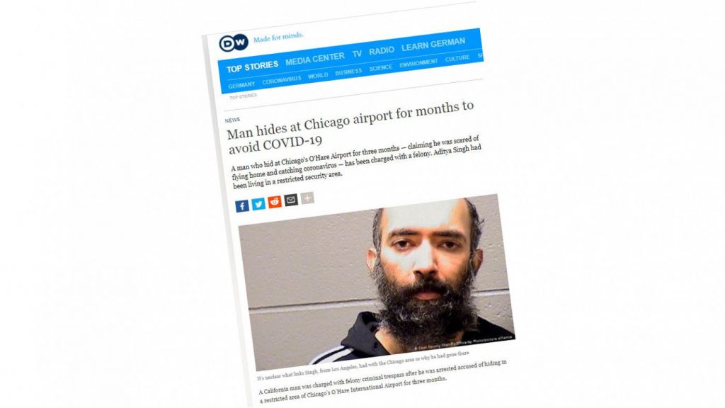 নভেল করোনাভাইরাসের ভয়ে বাড়ি না ফিরে যুক্তরাষ্ট্রের শিকাগো বিমানবন্দরে তিন মাস ধরে লুকিয়ে ছিলেন আদিত্য সিং। অবশেষে তিনি ধরা পড়েছেন। সংবাদমাধ্যম ডয়চে ভেলে এ খবর জানিয়েছে।