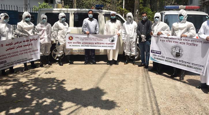 করোনা আক্রান্ত হয়ে বা করোনা সন্দেহে কেউ মারা গেলে মৃতের কবর খনন এবং জানাজাসহ দাফনের আনুষ্ঠানিকতা সম্পন্ন করতে প্রস্তুত বেসরকারি সমাজসেবামূলক সংগঠন আল মানহিল ওয়েলফেয়ার ফাউন্ডেশন। এ ক্ষেত্রে ধর্মীয় রীতি অনুযায়ী দাফন কাফনের ব্যবস্থা করা হবে বলে জানিয়েছেন সংগঠনটির নেতারা।