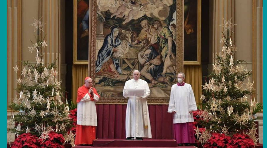 ভ্যাটিকান সিটি : আগের দিন সন্ধ্যায় এক ভাষণে পোপ ফ্রান্সিস বিশ্ববাসীকে নিজেদের দায়িত্ব মনে করে গরিবদের সাহায্য করার আহ্বান জানিয়েছেন। ভ্যাটিকানের সেন্ট পিটার্স ব্যাসিলিকার প্রধান অংশ নয় বরং পেছন দিকের একটি অংশে এ বছর ‘ক্রিসমাস ইভের ম্যাস’ অনুষ্ঠিত হয়। অনুষ্ঠানে ১০০ জনের কম মানুষ অংশ নিয়েছেন। সাধারণত প্রতিবছর বড়দিনের ‘ম্যাসে’ ১০ হাজারের বেশি মানুষ অংশ নেন। যাদের মধ্যে প্রায় ২০০ দেশের কূটনীতিকরা থাকেন।