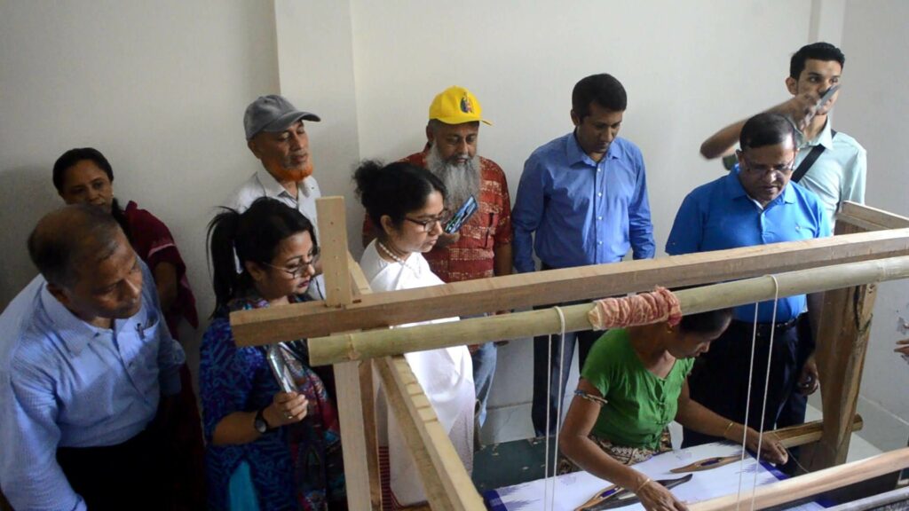 বান্দরবানে কলাগাছের সুতা থেকে শাড়ি তৈরিসহ নানা ধরনের হস্তশিল্প তৈরির সংবাদ সারাদেশে সাড়া ফেলেছে। আর সেই সুতা থেকে নানান ধরনের পরিবেশবান্ধব হস্তশিল্প তৈরির কাজ দেখতে সরেজমিনে বান্দরবানে পরিদর্শনে গেছে মন্ত্রণালয়ের একটি টিম।
