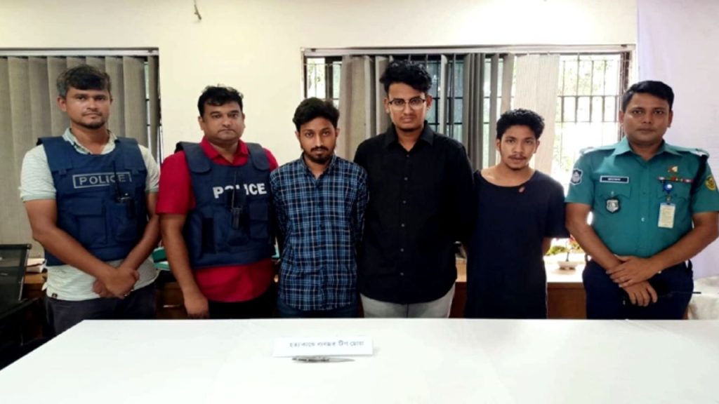 গ্রেফতারকৃতরা হলো- সজীব নাথ (১৯), সৌভিক পাল (২০) ও মো. শাখাওয়াত হোসেন (২০)।
