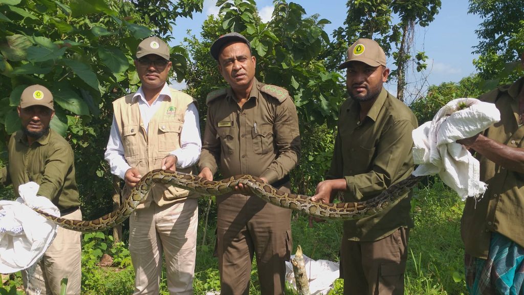 কাপ্তাই সদর বিটের গভীর অরণ্যে প্রায় ১০ ফুট লম্বা একটি অজগর সাপ অবমুক্ত করা হয়েছে।