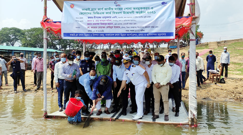 কাপ্তাই হ্রদের মাছের উৎপাদন বৃদ্ধি করতে এবং হ্রদের কার্প জাতীয় মাছের আধিক্য বাড়ানোর জন্য মাছের পোনা অবমুক্ত করা হয়েছে।