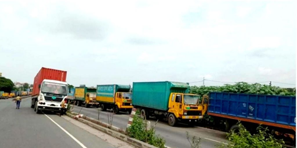 কাভার্ডভ্যান-ট্রাক প্রাইমমুভার ও শ্রমিক ফেডারেশনের ৭২ ঘণ্টার কর্মবিরতি চলছে