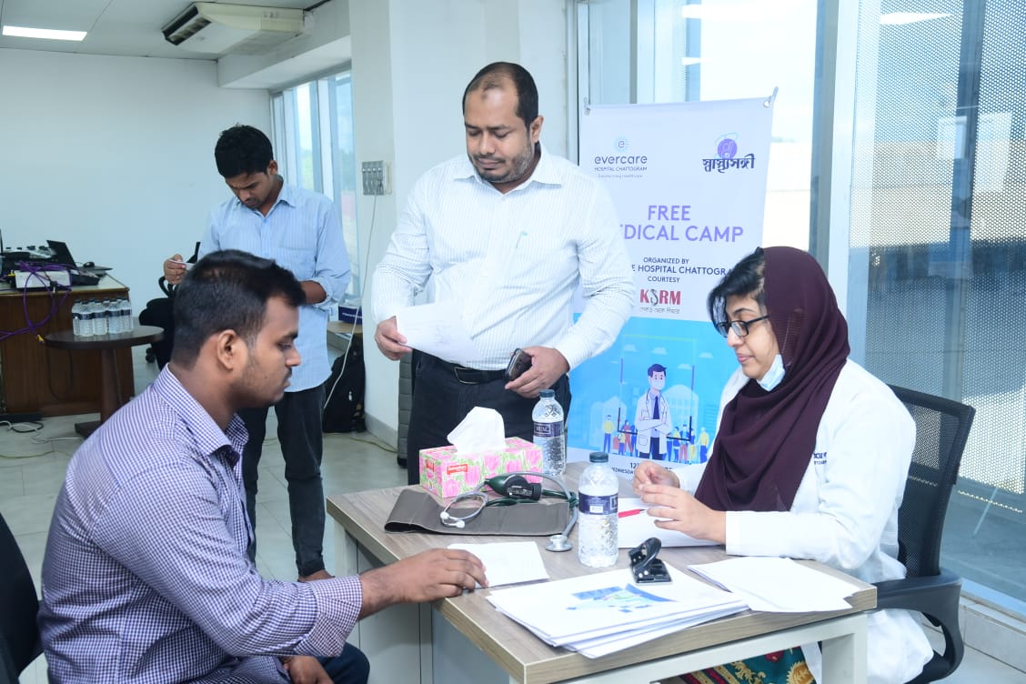 এভারকেয়ার হাসপাতাল চট্টগ্রামের ব্যবস্থাপনায় পরিচালিত ফ্রি মেডিকেল ক্যাস্পে চিকিৎসাসেবা নিয়েছেন কেএসআরএমের শিল্প কারখানার কর্মরত বিভিন্ন পর্যায়ের প্রায়ন ১৫০ কর্মকর্তা কর্মচারি।