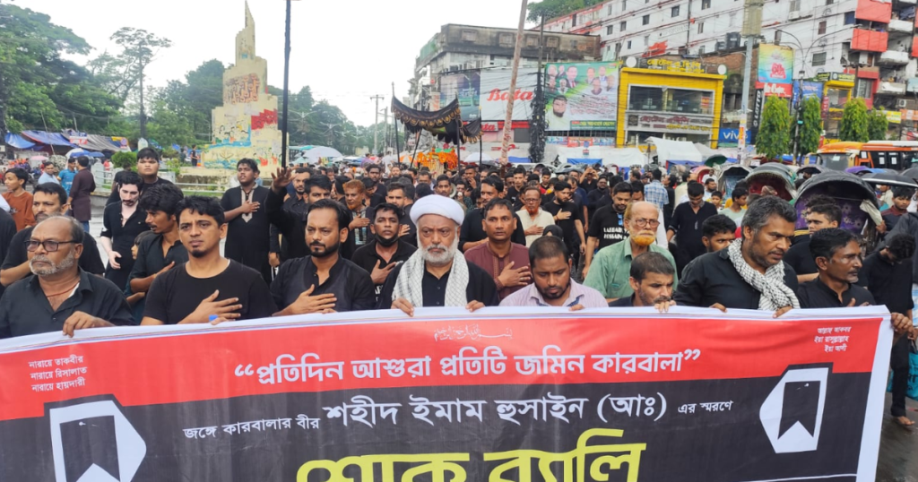 নিউমার্কেট মোড়ে মিছিলে সংক্ষিপ্ত বক্তব্যে মাওলানা আমজাদ হোসেন বলেন,“ইমাম হোসাইন (আ.) কেবল ইতিহাসের অংশ নন, তিনি ন্যায় ও মানবিকতার প্রতীক। মুসলিম উম্মাহর মধ্যে ঐক্য গড়ে তুলে জুলুম-নিপীড়নের বিরুদ্ধে রুখে দাঁড়াতে হবে।”