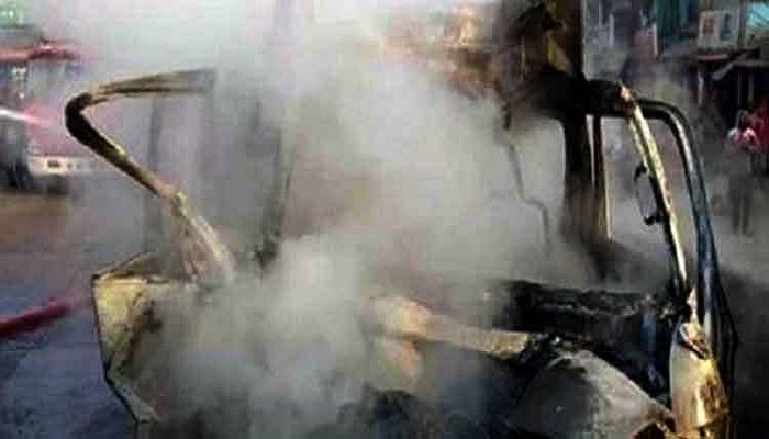 প্রত্যক্ষদর্শীরা জানিয়েছেন, যাত্রীবাহী মাইক্রোবাসটি গোবিন্দপুর স্টেশন এলাকায় যাত্রী ওঠানোর সময় পেছন থেকে একটি বাস ধাক্কা দিলে নিয়ন্ত্রণ হারিয়ে ফেলেন চালক । সঙ্গে সঙ্গে অপর একটি ট্রাক মাইক্রোবাসকে ধাক্কা দিলে এটি মহাসড়কের ওপরে উল্টে যায় এবং গ্যাস সিলিন্ডার বিস্ফোরণ ঘটে। এতে মাইক্রোবাসটিতে আগু লেগে যায়। এতে এ হতাহতের ঘটনা ঘটে।স্থানীয়রা ২ জনকে উদ্ধার করে ফায়ার সার্ভিসে খবর দেয়।পরে ফায়ার সার্ভিস ঘটনাস্থলে এসে উদ্ধার কাজ শুরু করে।