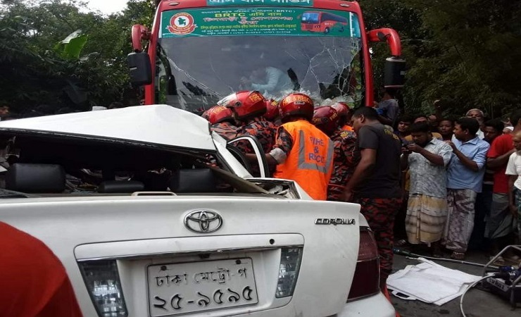 স্থানীয়রা জানান, নরসিংদী থেকে মজিবুর রহমান প্রাইভেটকারে করে পরিবারের সদস্যদের নিয়ে কুড়িগ্রামে আত্মীয়ের বাড়ি যাচ্ছিলেন। সকালে আরডিআরএস বাজারে পৌঁছলে একটি বাসের সঙ্গে প্রাইভেটকারটির মুখোমুখি সংঘর্ষ হয়। এতে মজিবুর, তার স্ত্রী বিলকিস বেগম, ছেলে বিল্লাল হোসেন মারা যান। মারা যাওয়া অন্যজন প্রাইভেটকার চালকের সহকারী। তার নাম জানা যায়নি। দুর্ঘটনায় গুরুতর আহত হয়েছেন মুজিবরের আরেক সন্তান ও প্রাইভেটকারের চালক।