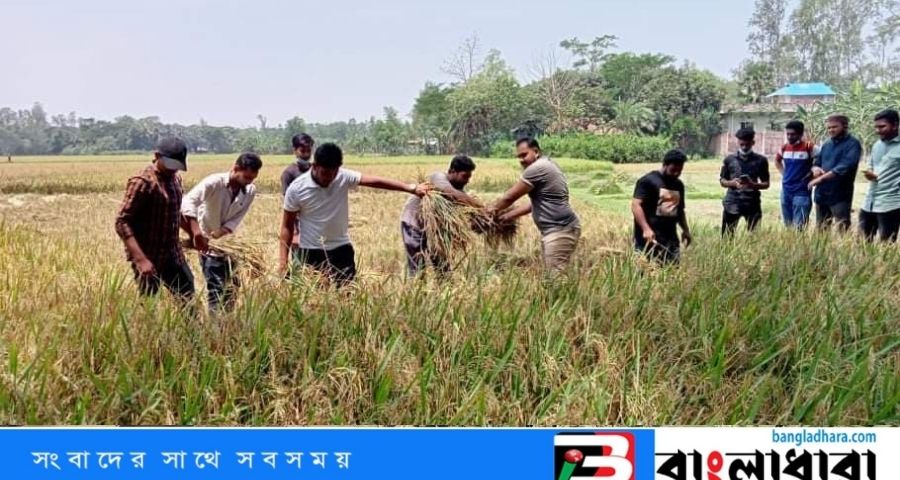 রবিবার (২৫ এপ্রিল) সকাল ১১টায় উপজেলার দুর্গাপুর ইউনিয়নের পশ্চিম দুর্গাপুর এলাকার কৃষক সিরাজ দৌলার ৩ বিঘা জমির ধান কেটে বাড়িতে পৌঁছে দিয়েছেন ছাত্রলীগের নেতাকর্মীরা। এতে ছাত্রলীগের ৩০-৩৫ জন নেতাকর্মী অংশ নেয়।