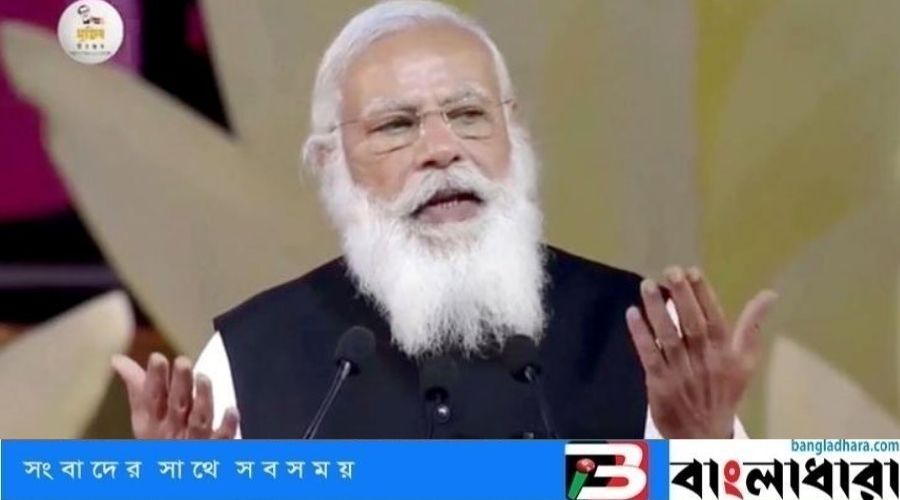 শুক্রবার (২৬ মার্চ) জাতীয় প্যারেড গ্রাউন্ডে বঙ্গবন্ধু শেখ মুজিবুর রহমানের জন্মশতবার্ষিকী ও বাংলাদেশের স্বাধীনতার সুবর্ণজয়ন্তী অনুষ্ঠানে নরেন্দ্র মোদি এ কথা বলেন।