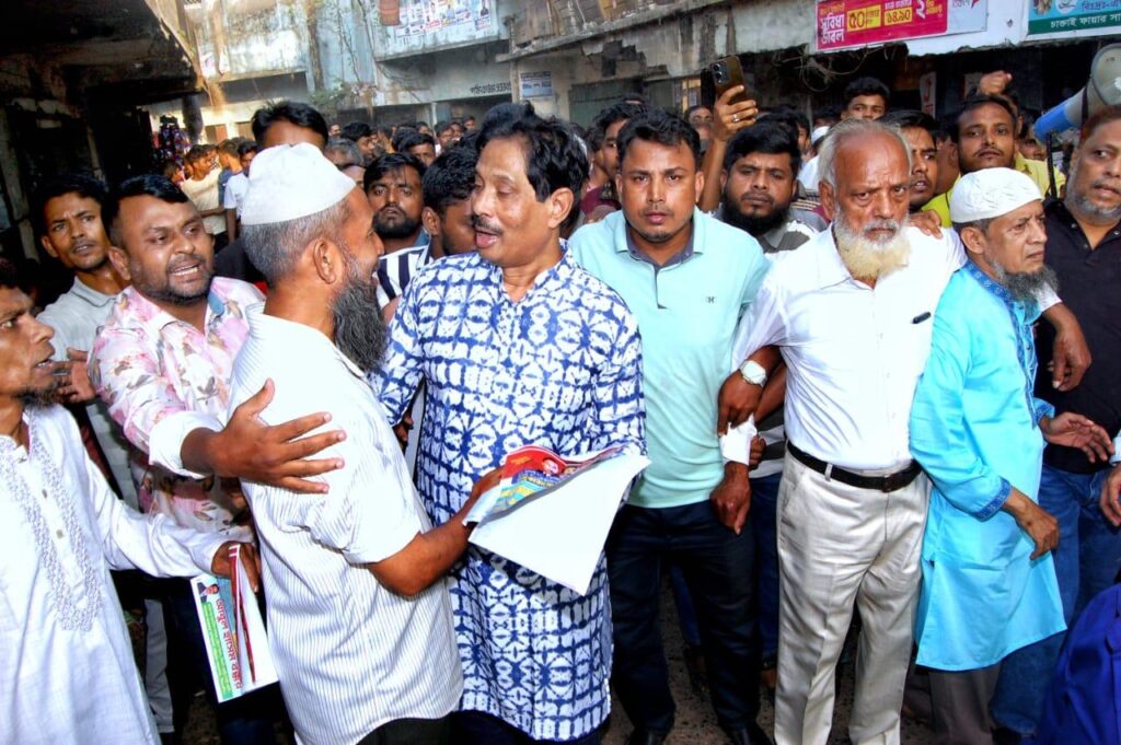 এর আগে তিনি নেতাকর্মীদের সঙ্গে নিয়ে রাজাখালী রোডের সামনে থেকে শুরু করে ভাঙ্গা ফুল, চাল পট্টি, নতুন রাস্তা হয়ে বেড়া মার্কেট এলাকায় সাধারণ মানুষের মাঝে লিফলেট বিতরণ করেন।