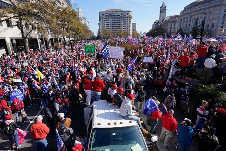 ‘মেক আমেরিকা গ্রেট এগেইন’ স্লোগানে উত্তাল ওয়াশিংটন ডিসি সামনের রাস্তা। সেখানে মুখে স্লোগান আর হাতে পতাকা নিয়ে বিক্ষোভ করেছেন হাজারো ট্রাম্প সমর্থক। সদ্য শেষ হওয়া প্রেসিডেন্ট নির্বাচনের ফলাফল কিছুতেই মানতে চাইছেন না ট্রাম্প সমর্থকরা। নির্বাচনে ভোট জালিয়াতির প্রতিবাদে এই সমাবেশ।