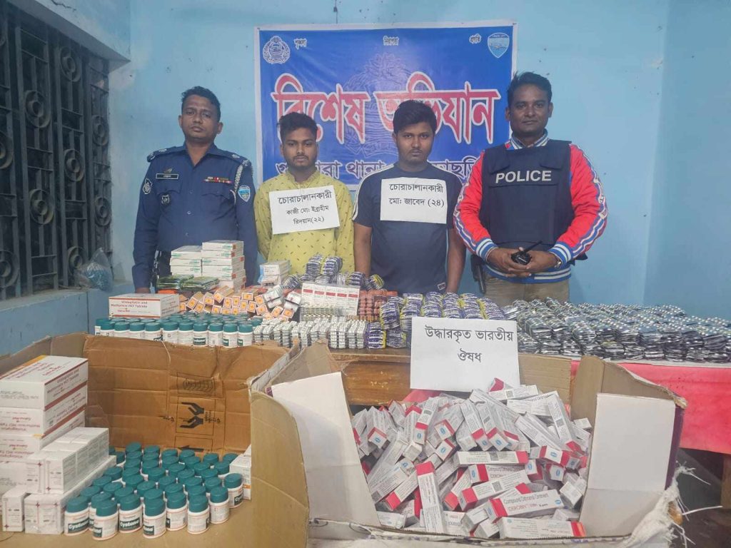 এসময় ভারতীয় কোম্পানির ২০ প্রকার ৩৩ হাজার ৩৪৩ পিস ওষধসহ ২ জনকে গ্রেফতার করেছে। আটকরা হলো— চট্টগ্রাম জেলার ফটিকছড়ি থানার উত্তর রাঙামাটিয়া পৌরসভার বাসিন্দা মোহাম্মদ সেলিমের ছেলে মোহাম্মদ জাবেদ (২৪) এবং একই এলাকার মৃত কাজী মো. জাহাঙ্গীর আলমের ছেলে কাজী মো. ইব্রাহিম রিদয়ান (২২)।
