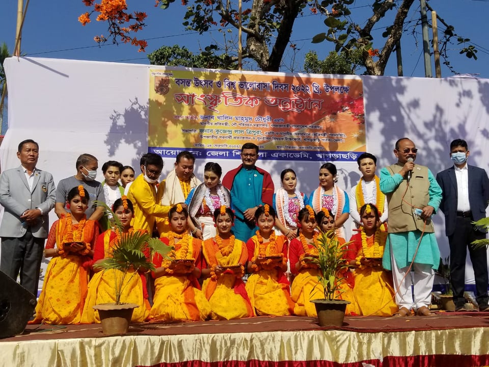 বর্নাঢ্য অনুষ্টান মালার মধ্য দিয়ে খাগড়াছড়িতে বসন্ত উৎসব ও বিশ্ব ভালোবাসা দিবস পালিত হয়েছে।