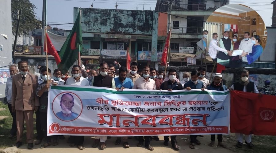 পার্বত্য খাগড়াছড়ি জেলার মাটিরাঙ্গা উপজেলার তবলছড়ি কেন্দ্রীয় কবরস্থানে বীর মুক্তিযোদ্ধা মো. ছিদ্দিকুর রহমানকে দাফন করতে না দেয়ার প্রতিবাদে মানবন্ধন হয়েছে।