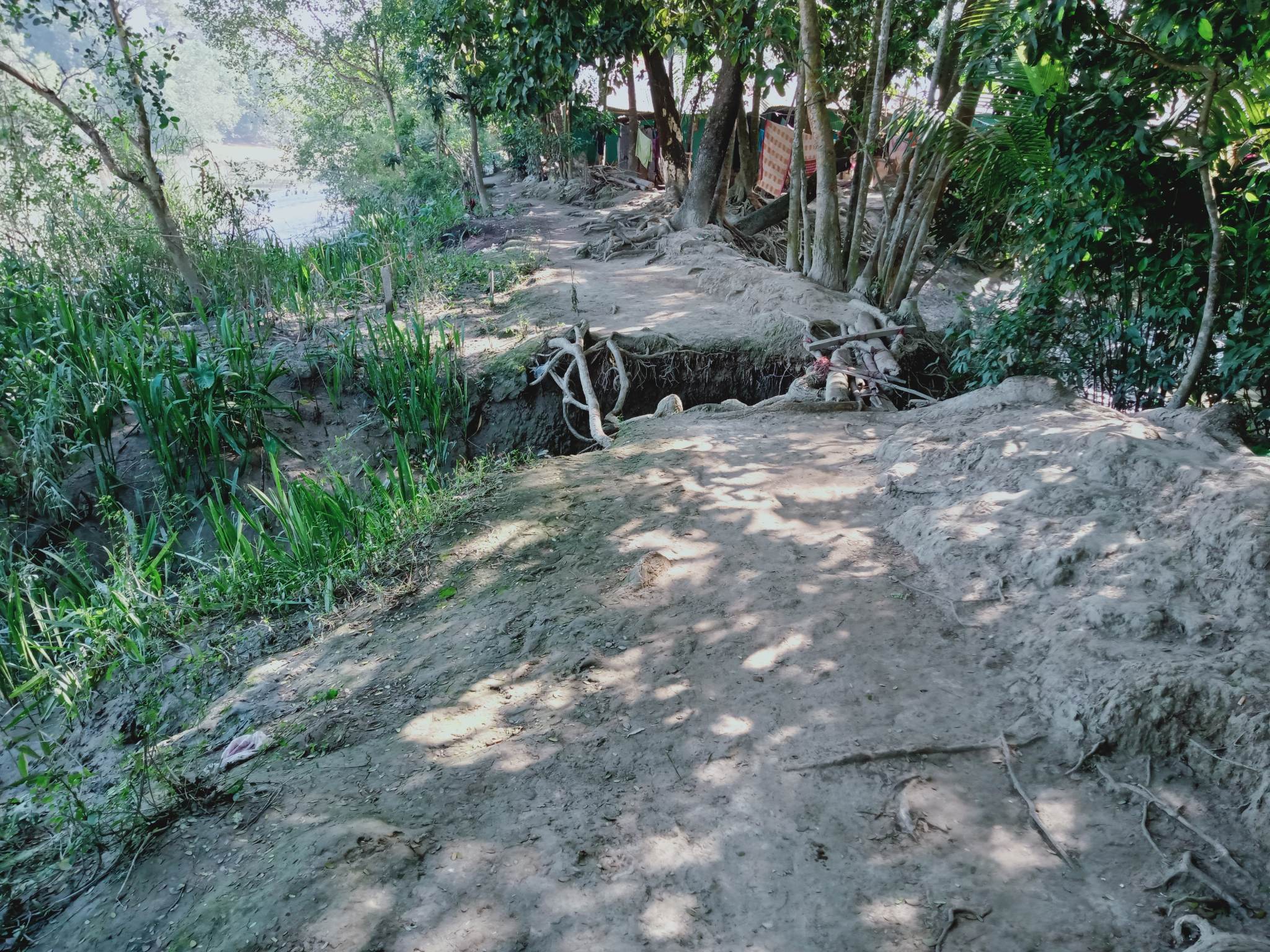 স্থানীয় বাসিন্দা বেবি আকতার ও মো. আজাদ বলেন, এ মেঠোপথ দিয়ে অটোরিকশায় চলাচল করা যেতো। এখন পায়ে হেঁটে চলাচল করা দায় হয়ে গেছে। এ পথ দিয়ে অসুস্থ মানুষ ও স্কুল পড়ুয়া শিক্ষার্থীদের যাতায়াতে ভোগান্তি পোহাতে হয়। এ রাস্তাটি দীর্ঘদিন ধরে বারবার সংস্কারের দাবি জানিয়ে আসলেও কিছুতে কিছু হয়নি। খালের ভাঙনে সড়কটি তো গেছেই এখন ভিটে মাটির হারানোর অপেক্ষায় আছি। তারা জানান, গত বছর ৪টি পরিবার ভিটে মাটি হারিয়েছেন। ভাঙনের কবলে রয়েছে আরো ১০-১২টি পরিবার।