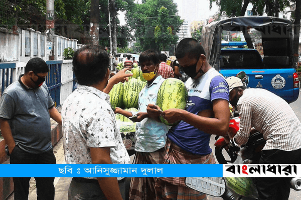 আজ দুপুরে লাভ লেইনস্থ নেভাল এভিনিউ এলাকায় এই তরমুজ বিক্রি করতে দেখা যায় চড়া দামে। ব্যাপক চাহিদাকে পুঁজি করে চট্টগ্রামে তরমুজের দাম কয়েকগুণ বাড়িয়ে দিয়েছেন মুনাফালোভী ব্যবসায়ীরা। একেকটি তরমুজের দাম এখন ৫০০ থেকে ৬০০ টাকা! কিছুদিন আগেও বড় আকারের একটি তরমুজ বিক্রি হতো যেখানে ২০০ থেকে ২৫০ টাকায়, সেখানে এখন তা বিক্রি হচ্ছে ৫০০ থেকে ৬০০ টাকায়! মাঝারি আকারের তরমুজ বিক্রি হচ্ছে ৪০০ থেকে ৪৫০ টাকায়। ছোট তরমুজও ৩৫০ টাকার নিচে মিলছে না।
