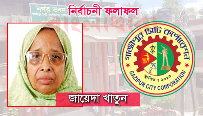 গাজীপুর সিটি কর্পোরেশনের নতুন মেয়র নির্বাচিত হলেন টেবিল ঘড়ি প্রতীকের স্বতন্ত্র প্রার্থী জায়েদা খাতুন। বৃহস্পতিবার দিবাগত রাত দেড়টার দিকে ৪৮০ কেন্দ্রের ফল ঘোষণার শেষে জায়েদা খাতুনকে বেসরকারিভাবে বিজয়ী ঘোষণা করা হয়। সকাল ৮টা থেকে বিকাল ৪টা পর্যন্ত ৪৮০টি কেন্দ্রে বিরতিহীনভাবে চলা ভোটে প্রথমবারের মতো জায়েদা খাতুন নারী মেয়র নির্বাচিত হয়েছেন বলে ঘোষণা দেন ঢাকা অঞ্চলের আঞ্চলিক নির্বাচন কর্মকর্তা মো. ফরিদুল ইসলাম।