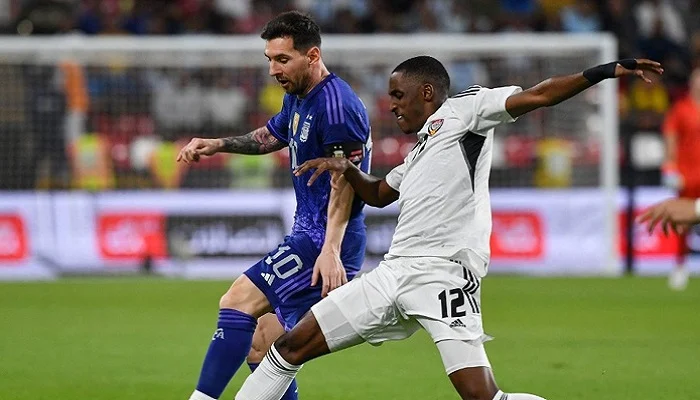 প্রথমার্ধে আর্জেন্টিনা ৪-০ গোলের লিড নেয়। ম্যাচের ৪৪ মিনিটে গোল করেন মেসি। বক্সের ভেতর থেকে ডান পায়ের জোরালো শটে আরব আমিরাতের গোলরক্ষকে বোকা বানান বাঁ-পায়ের এই জাদুকর। এরপর ৬০ মিনিটে জোয়াকিম কোরেইরা গোল করে দলের বড় জয় নিশ্চিত করেন।