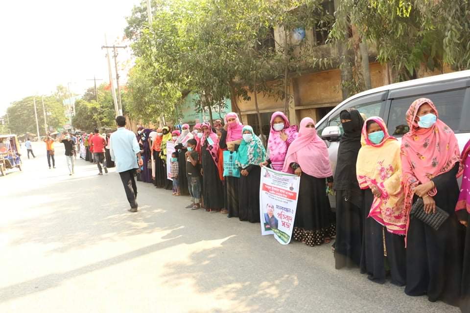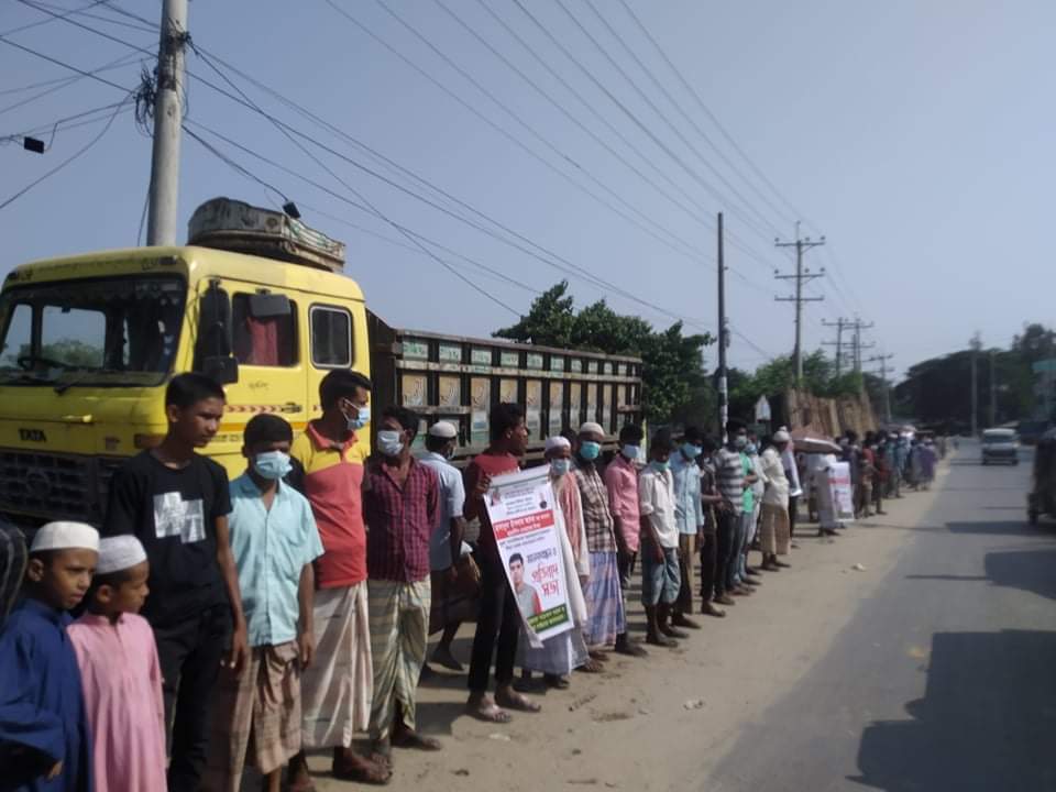 মানববন্ধনে আওয়ামীলীগ, যুবলীগ ও ছাত্রলীগের নেতাকর্মী ছাড়াও সহস্রাধিক স্থানীয় নারী ও পুরুষ অংশগ্রহণ করেন।