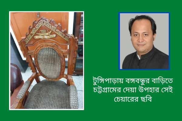 বৃহস্পতিবার (২৭ আগস্ট) দুপুরে চট্টগ্রাম-৯ আসন থেকে নির্বাচিত জাতীয় সংসদ সদস্য ও শিক্ষা উপমন্ত্রী ব্যারিস্টার মহিবুল হাসান চৌধুরী নওফেল তাঁর ফেসবুক স্ট্যাটাসে টুঙ্গিপাড়ায় চট্টগ্রামের উপহার সেই চেয়ারের কথা তুলে ধরেন।