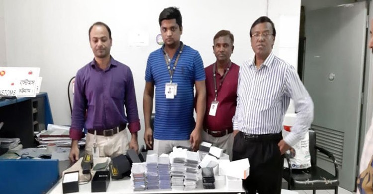 কাস্টমস কর্মকর্তারা জানান, সংযুক্ত আরব আমিরাতের দুবাই থেকে বাংলাদেশ বিমানের একটি উড়োজাহাজে আজ সকাল সাড়ে আটটায় চট্টগ্রামে আসেন মহিউদ্দিন নামের এক যাত্রী। তাঁর তিনটি ব্যাগ স্ক্যান করে সন্দেহ হয় কর্মকর্তাদের। এরপর ব্যাগ খুলে ৮০ কার্টন বিদেশি ব্র্যান্ডের সিগারেট পাওয়া যায়। এতে ১৬ হাজার শলাকা সিগারেট আছে। সকাল সাড়ে নয়টায় একই দেশ থেকে আসা আরেকটি উড়োজাহাজের যাত্রী মিজানুর রহমানের ব্যাগ তল্লাশি করে ৭৯টি বিভিন্ন ব্র্যান্ডের মোবাইল ফোন পাওয়া যায়। জব্দ করা সিগারেট ও মোবাইল ফোনের দাম ৩০ লাখ টাকা।