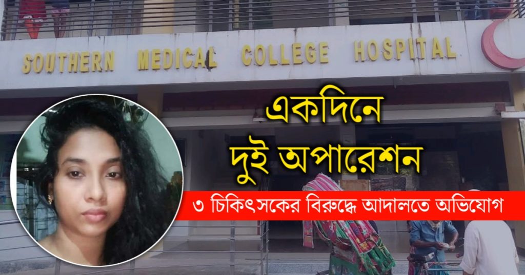 অভিযোগে বাদী উল্লেখ করেন, গত ২২ অক্টোবর সকালে আমার স্ত্রী পপি আক্তার পেটের ব্যথা অনুভব করলে বাসার পাশের সাউদার্ন মেডিকেল কলেজ হাসপাতালের জরুরি বিভাগে নিয়ে যাই। চিকিৎসক হাসপাতালে ভর্তি দেন। পরীক্ষা-নিরীক্ষা শেষে অ্যাপেন্ডিসাইটিসের ব্যথা শনাক্ত করেন এবং অতিদ্রুত অপারেশন করতে বলেন। গত ২৬ অক্টোবর সকাল ৯টায় রোগীকে অপারেশন থিয়েটারে নিয়ে যাওয়া হয়। তিন ঘণ্টা পর অপারেশন থিয়েটার থেকে বের করে চার নম্বর ওয়ার্ডে আনা হয়।
