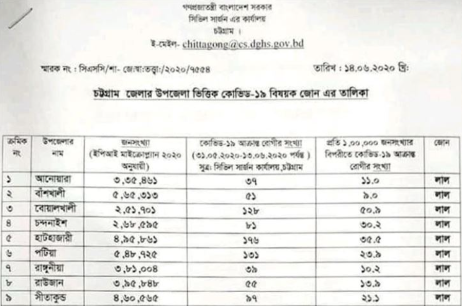 চট্টগ্রামের ৯ উপজেলাকেও ‘রেড জোন’ ঘোষণা