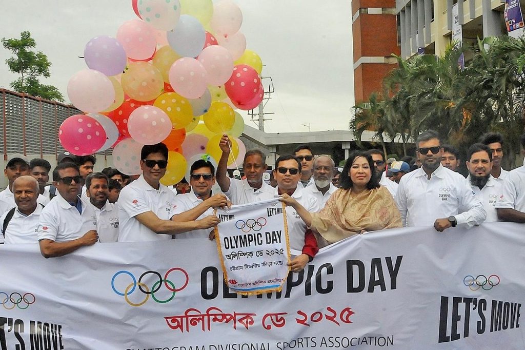 খেলাধুলায় শিশু-কিশোর, তরুণ-যুবাসহ সর্বস্তরের মানুষদের আগ্রহ বাড়ানোর লক্ষ্য নিয়ে আন্তর্জাতিক অলিম্পিক আন্দোলনের অংশ হিসেবে চট্টগ্রামেও বর্ণাঢ্য আয়োজনে পালিত হলো অলিম্পিক ডে রান ২০২৫।