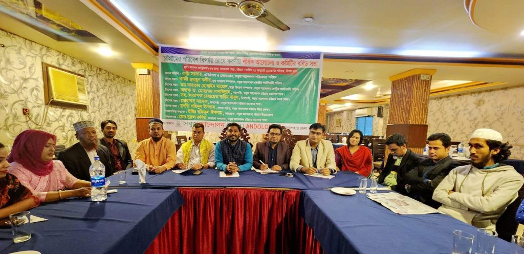 শনিবার (২১ জানুয়ারি) নগরীর বহদ্দারহাটের কাশবন রেস্টুরেন্টে ‘চট্টগ্রামের পরিবেশ বিপর্যয় রোধে করণীয়’ শীর্ষক আলোচনা সভা ও জেলা, মহানগর কমিটির বর্ধিত সভা এসব কথা বলা হয়।