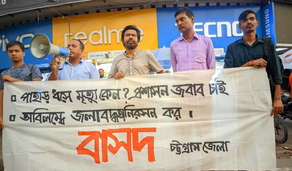 চট্টগ্রামে পাহাড় ধসে মৃত্যু বন্ধ ও জলাবদ্ধতা নিরসনের দাবিতে বিক্ষোভ সমাবেশ ও মানববন্ধন করেছে বাংলাদেশের সমাজতান্ত্রিক দল (বাসদ) চট্টগ্রাম জেলা শাখা।