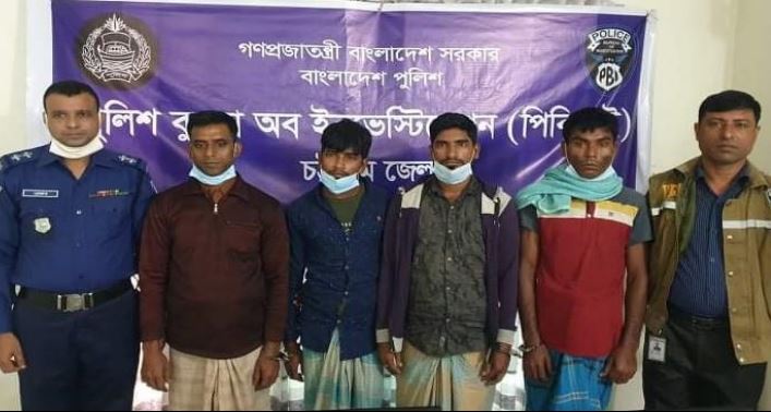 গ্রেপ্তারকৃতরা হলেন, খাগড়াছড়ির গুইমারা উপজেলার মৃত আব্দুস সালামের ছেলে নুরুল ইসলাম (৪৩), চট্টগ্রামের ভুজপুরের বাগান বাজার এলাকার নুরুল ইসলামের ছেলে মো. সেলিম (৩২), নোয়াখালীর সুধারাম উপজেলার মৃত মফিজুর রহমানের ছেলে মো. মোশারফ (২৬) এবং একই এলাকার ইসমাইল মিয়ার ছেলে ইব্রাহিম খলিল (৩২)।