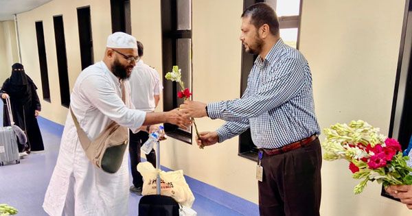 এ সময় শাহ আমানত আন্তর্জাতিক বিমানবন্দরের পরিচালক গ্রুপ ক্যাপ্টেন শেখ আব্দুল্লাহ আলমগীর আগত হাজিদের ফুলেল শুভেচ্ছা জানান। এ সময় সিএএবিন কর্মকর্তাবৃন্দসহ বিমানবন্দরের নির্বাহী ম্যাজিস্ট্রেট বিমান বাংলাদেশ এয়ারলাইন্সের জেলা ব্যবস্থাপক, স্টেশন ম্যানেজারসহ অন্যান্য সংস্থার ঊর্ধ্বতন কর্মকর্তারা উপস্থিত ছিলেন।