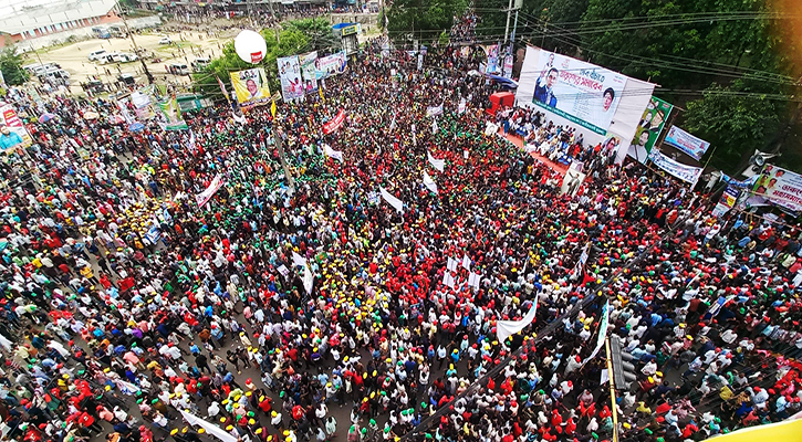 এতে ভোগান্তিতে পড়ে এই রুটে চলাচল করা যাত্রীরা। গন্তব্যে যেতে অনেকে ঘণ্টার পর ঘণ্টা গাড়িতে বসে থাকলেও অনেকে আবার পায়ে হেঁটে রওনা দেন। সমাবেশ কেন্দ্রীক বিএনপি নেতা-কর্মীদের ব্যাপক উপস্থিতি লক্ষ্য করা যায়।