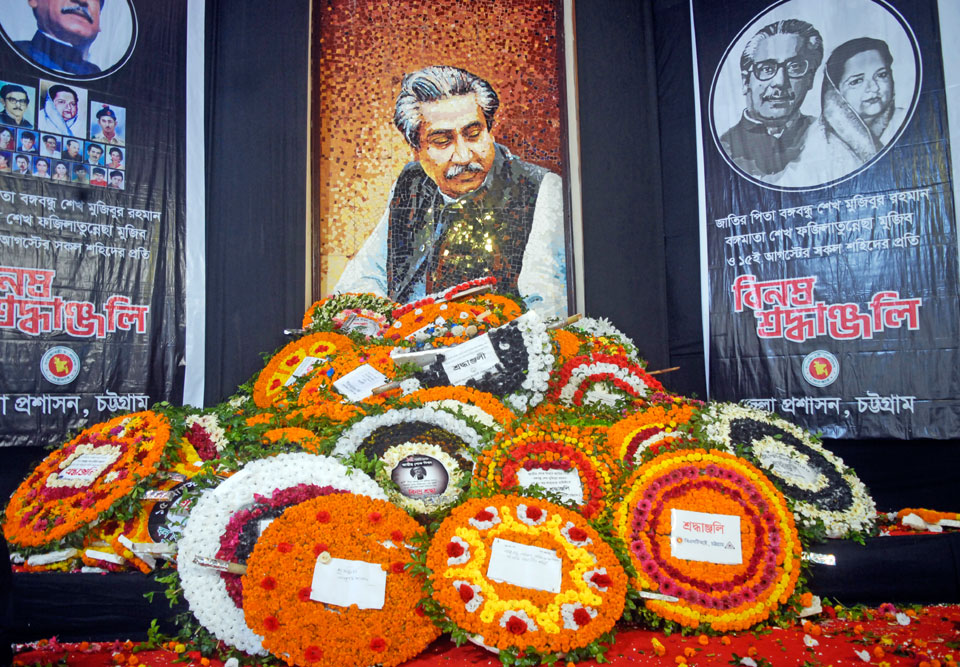 সকাল ৯টায় জেলা শিল্পকলা একাডেমিতে বঙ্গবন্ধুর প্রতিকৃতিতে চট্টগ্রামের বিভিন্ন সরকারি অফিসের ঊর্ধ্বতনরা ফুল দিয়ে শ্রদ্ধা নিবেদন করেন। কর্মসূচিতে উপস্থিত ছিলেন প্রশাসনের সর্বস্তরের কর্মকর্তা-কর্মচারীরাও।