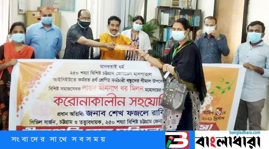 মানবতাই ধর্ম এই স্লোগানকে সামনে রেখে গীতাঞ্জলি মাতৃ সম্মিলনীর (গীমাস) উদ্যোগে ২৫০ শয্যা বিশিষ্ট চট্টগ্রাম জেনারেল হাসপাতালের ৪র্থ শ্রেণীর কর্মচারী বন্ধু তথা করোনার সম্মুখযোদ্ধাদের জন্য মানবিক সহযোগিতা প্রদান করা হয়েছে।