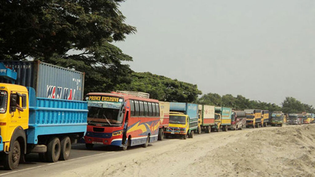 মঙ্গলবার (২৮ মার্চ) রাত আড়াইটার দিকে এ যানজট শুরু হয়। আজ বুধবার (২৯ মার্চ) বেলা সাড়ে ১১টা পর্যন্ত এ যানজট শেষ হয়নি। কখন শেষ হবে তাও নিশ্চিত করে বলতে পারছে না কেউ।