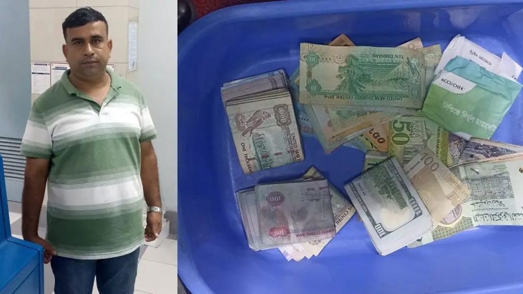এসময় তার কাছে ৪ হাজার ৭০০ ইউএস ডলার, ৪৭ হাজার ৮৮৫ ইউএই দিনার, ৩ হাজার ৭৬২ সৌদি রিয়াল, ৩৪৬ ওমানি দিনার এবং বাংলাদেশি ৩৬ হাজার টাকা জব্দ করা হয়।