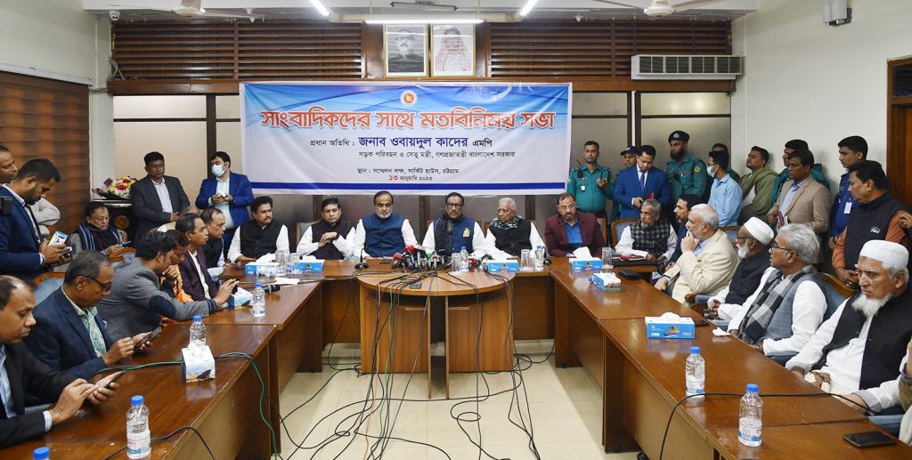 শুক্রবার (১৩ জানুয়ারি) চট্টগ্রাম সার্কিট হাউজের সম্মেলন কক্ষে সাংবাদিকদের সাথে মতবিনিময় সভায় সড়ক পরিবহন ও সেতুমন্ত্রী ওবায়দুল কাদের এসব কথা বলেন।