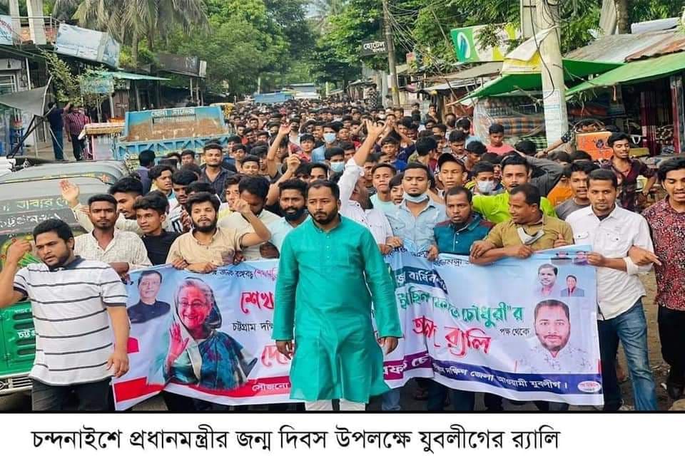 প্রধানমন্ত্রী ও বাংলাদেশ আথলীগের সভাপতি শেখ হাসিনার ৭৫ তম জন্ম বার্ষিকী উপলক্ষে যুবলীগ নেতা ইয়াছিন আরাফাত চৌধুরীর নেতৃত্বে বণার্ঢ্য র্যালি উপজেলার প্রধান প্রধান সড়কগুলি পদক্ষিণ করে।