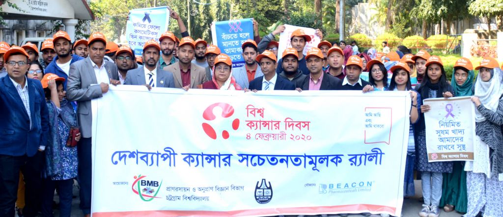 বিশ্ব ক্যান্সার দিবস উপলক্ষে চট্টগ্রাম বিশ্ববিদ্যালয়ের (চবি) প্রাণরসায়ন ও অনুপ্রাণ বিজ্ঞান বিভাগের উদ্যোগে ‘দেশব্যাপী ক্যান্সার সচেতনতামূলক’ র্যালি অনুষ্ঠিত হয়েছে।