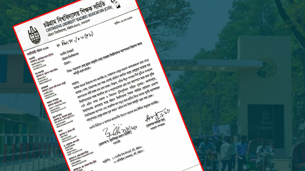 বুধবার (১২ জুলাই) চবি শিক্ষক সমিতির সভাপতি অধ্যাপক ড. মুস্তাফিজুর রহমান ছিদ্দিকী ও সাধারণ সম্পাদক অধ্যাপক আবদুল হক স্বাক্ষরিত চিঠিতে বলা হয় ‘আমরা অত্যন্ত উদ্বেগের সঙ্গে জানাচ্ছি যে, সারাদেশে ডেঙ্গুর প্রকোপ আশংকাজনক হারে বেড়ে চলেছে। ঢাকা, চট্টগ্রামসহ প্রায় সমগ্র দেশেই প্রতিদিন অগণিত মানুষ ডেঙ্গুজ্বরে আক্রান্ত হয়ে হাসপাতালে ভর্তি হচ্ছে এবং মারা যাচ্ছে।