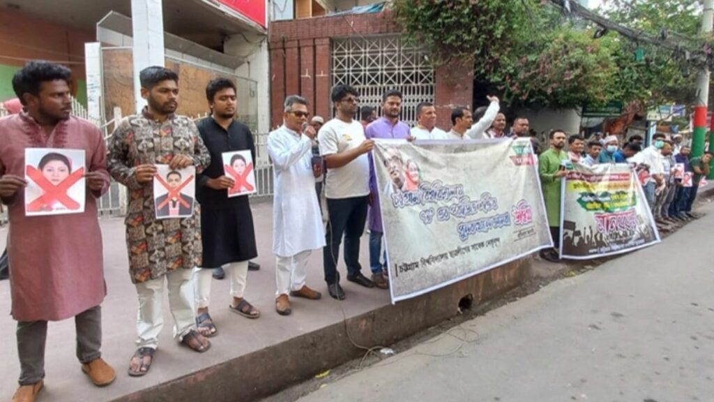 জামায়াতপন্থী শিক্ষককে প্রক্টর বানানো ও উপাচার্যের মেয়ের বিরুদ্ধে নিয়োগ বাণিজ্যের অভিযোগসহ বিভিন্ন অভিযোগে চট্টগ্রাম বিশ্ববিদ্যালয় উপচার্যের বিরুদ্ধে মানববন্ধন করেছে বিশ্ববিদ্যালয় শাখা ছাত্রলীগের সাবেক নেতারা।